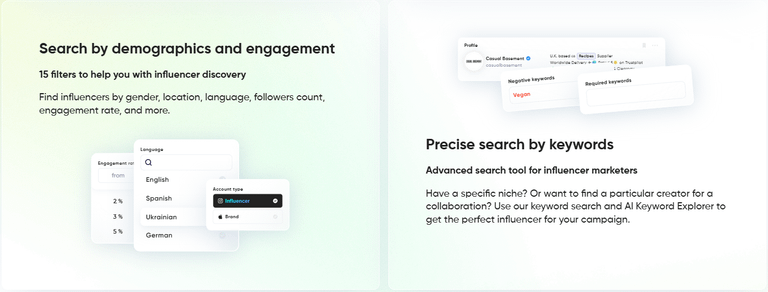 - "Engagement Rate (ER)" – allows you to focus on more active influencers whose audience constantly interacts with the content.
