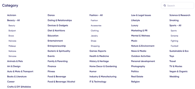 TrendHERO offers the function to filter accounts by categories, allowing for a more precise search configuration and selection of those whose content best matches our goals.
